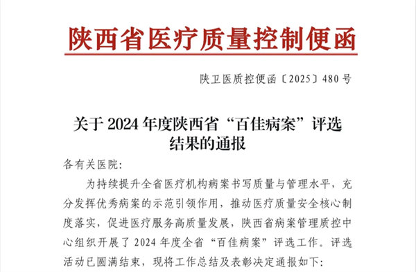 近日,由陕西省病案质控中心组织开展的省级“百佳病案”评选结果正式揭晓,宝鸡第三医院心血管内科三病区秦康医生、急诊医学科李碧林医生的两份参评病历,历经多轮严苛筛选,在全省各级医疗机构报送的众多案例中脱颖而出,双双入选省级“百佳病案”。【详细】